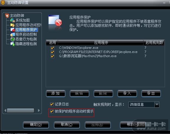 每次启动QQ,旺旺什么的程序,都会提示应用程序被保护,很烦,难道都没办法让他不提示吗?一定要在保险箱里把对该程序的保护关掉才不提示吗?保护就保护了,还这么喜欢表现自己,每次都来邀功,