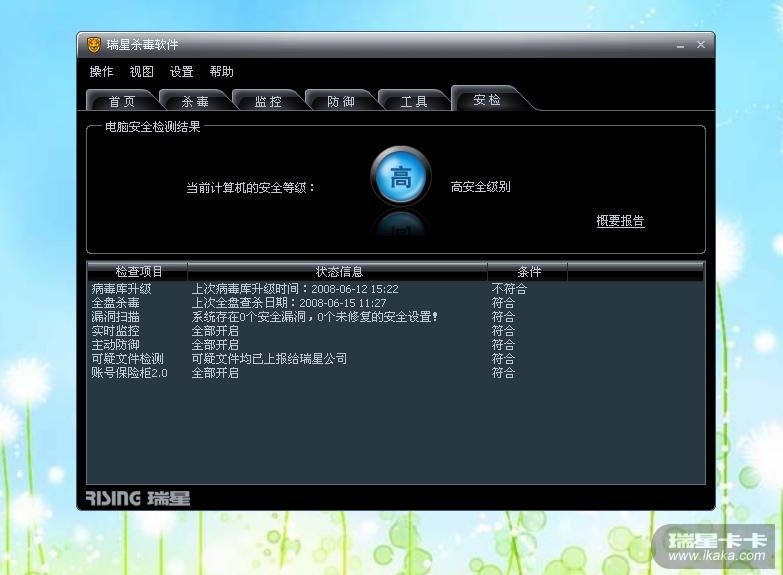前几天在用瑞星安检的时候,安全等级总是"中"