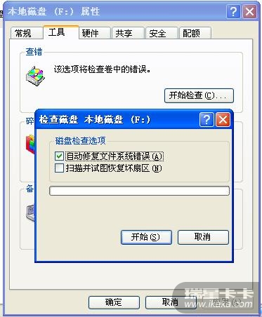 晕死,运行磁盘碎片整理程序,说是我的F盘检测到损坏,要运行chkdsk /f