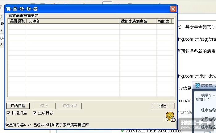 点开始扫描后,会在听诊器的同目录下生成一个“瑞星听诊器.htm"的文件,将这个文件上报瑞星分析。