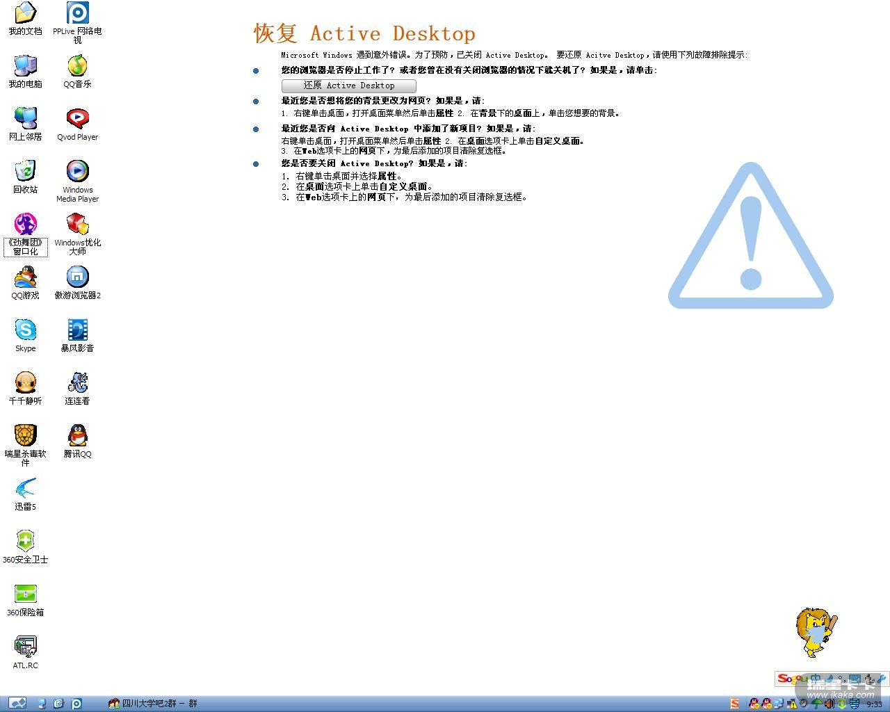 在桌面右键——属性——选择桌面——然后自定义桌面——Web——然后把那些网页给删除了!自己试试