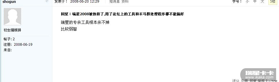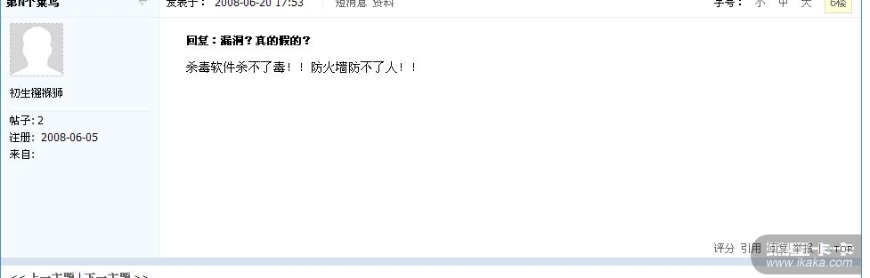 http://bbs.ikaka.com/showtopic-8516084.aspx用户系统信息:Mozilla/4.0 (compatible; MSIE 7.0; Windows NT 5.1; WPS; Mozilla/4.0 (compatible; MSIE 6.0; Windows NT 5.1; SV1) ; CIBA; MAXTHON 2.0)