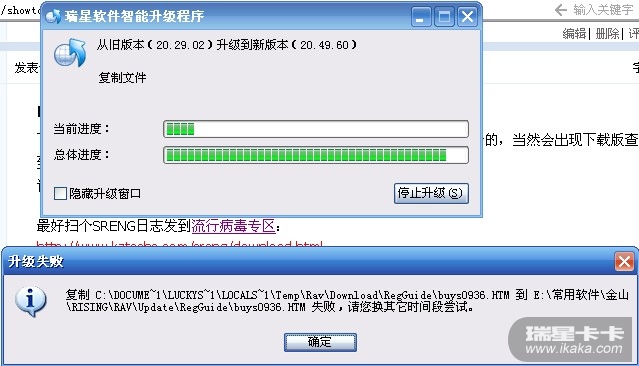 如果还是不能升级,试试把瑞星安装到C:\RAV ,看升级是否正常
