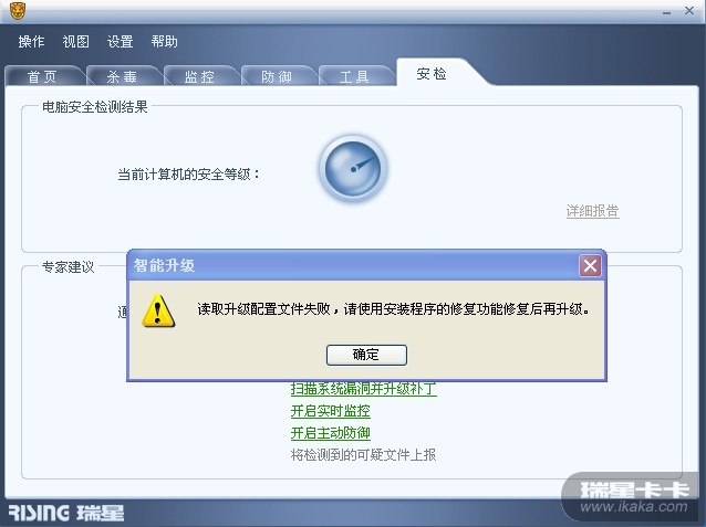 开始-所有程序-瑞星杀毒-添加与删除程序-选择修复!