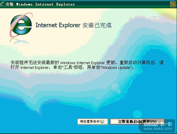 修改注册表后,下载了最新的IE7。重装IE时也遇到错误。重启后还是重装不了,出现同样的提示。