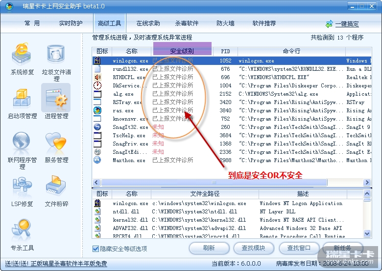 总体感觉是不太好看,又是瑞星式的经典蓝色(总喜欢用蓝色),没有新鲜感。