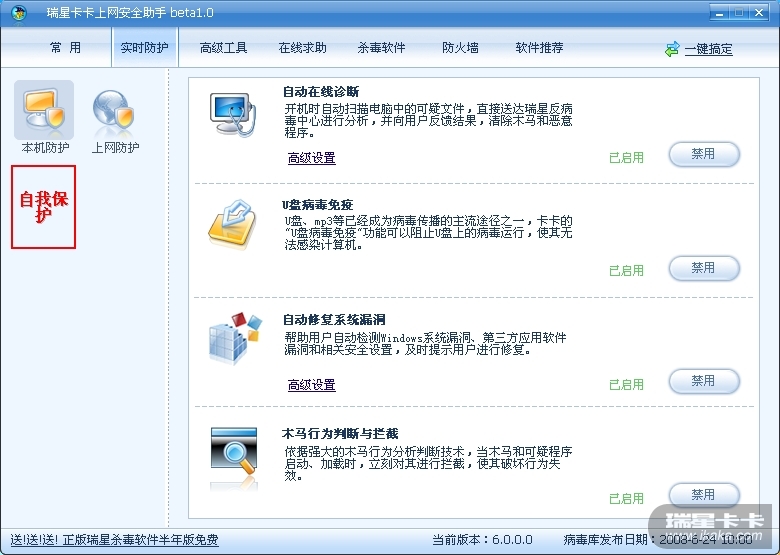希望增加助手的自我保护功能,很多病毒都能杀卡卡助手