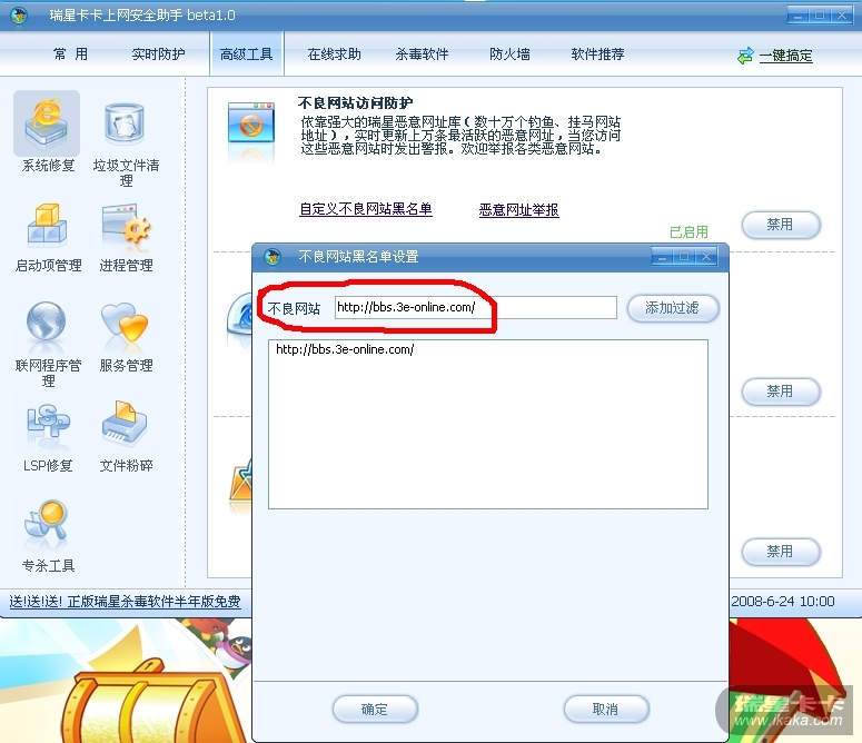 目前卡卡助手的不良网站访问防护仅支持IE浏览器,不支持其他浏览器(包括使用IE核心的浏览器)