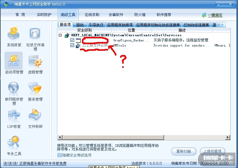 查看完整版本: bug,卡卡助手遇到病毒就不自动上报了?