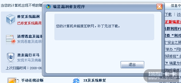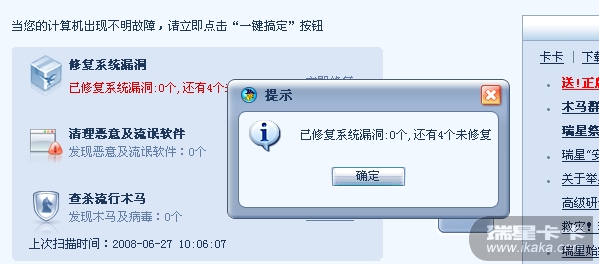 瑞星卡卡发现系统漏洞1个,但是修复不了,是不是应经中毒了,瑞星杀毒也没查出病毒呀,我该怎么办???????谁能帮帮我!:default8: