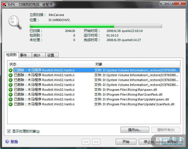 卡巴升级到最新后,把我D盘XP系统盘下的瑞星干掉了。很郁闷啊!!