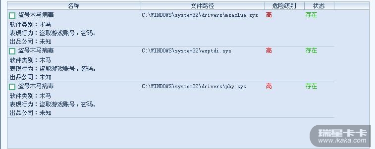 卡卡是安全辅助工具,如果加个病毒库那和杀毒软件也就没区别了,除了依靠路径+文件名、MD5外,还有那个恶意代码库,同时具有特有的未知病毒行为判断的技术。