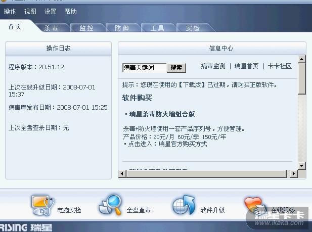 喀吧司机被我一气卸了,然后弄了个瑞星,本来网上说是免费,结果安装好了,提示ID过期