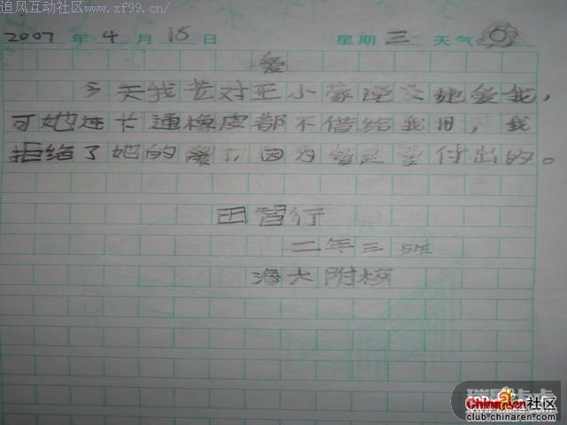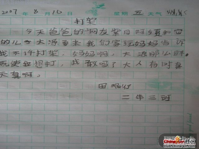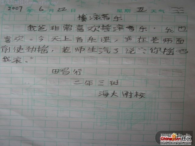 今天偷看了儿子的日记我吐血了