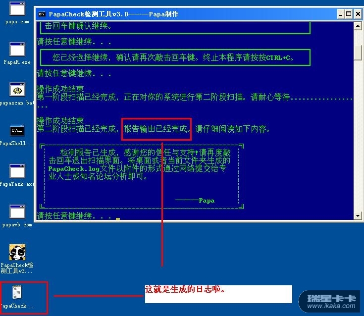 它是自动扫描的,不过当它扫描结束后,日志和它找到的可疑文件都会自动生成在系统当前用户的默认桌面下。