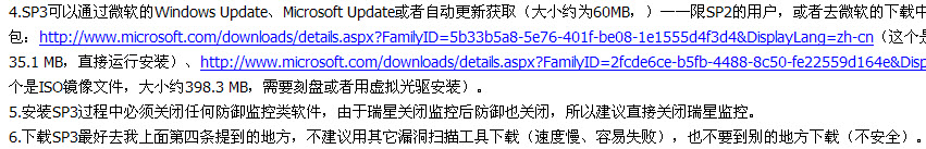 希望大家尽快升级到SP3,这次更新主要是安全方面的更新,如