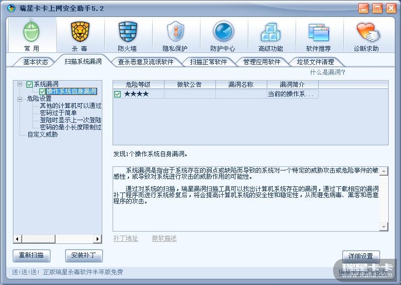最近不太平,所以今天早上用卡卡查系统漏洞。