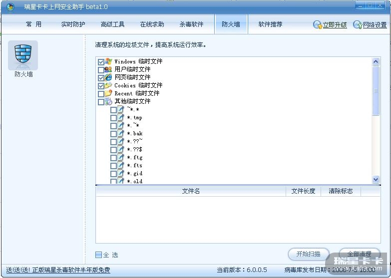 在上面先选择您要清理的文件类型,然后点开始查找,找到符合条件的文件后会在下面列出来,这是再点全部清理才可以