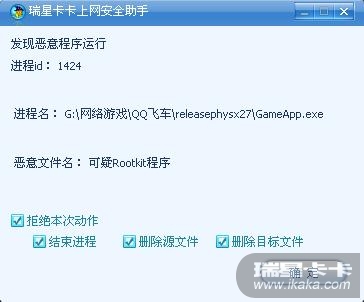 卡卡的木马行为判断与拦截功能与主动防御相似,无论程序是否正常,只要行为触发了监控规则,就会拦截。