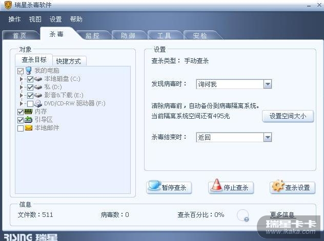 然后想让他查杀个目录或者全盘查杀的话 总是只查了启动项目,启动项目最后的一个有时候是查Main boot有时候查Logicl boot,会顿在那里几分钟,然后就结束了 其他勾上去的查杀内容都不查的。