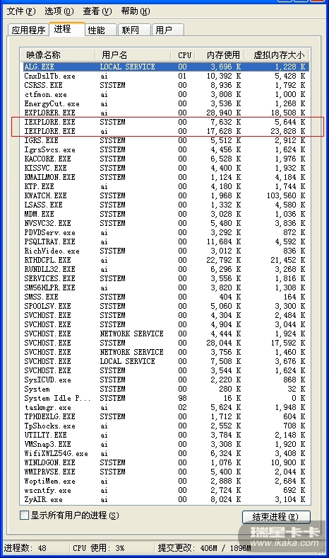 2.找到用户名为system的进程iexplore.exe对应的文件,结束进程后删除它
