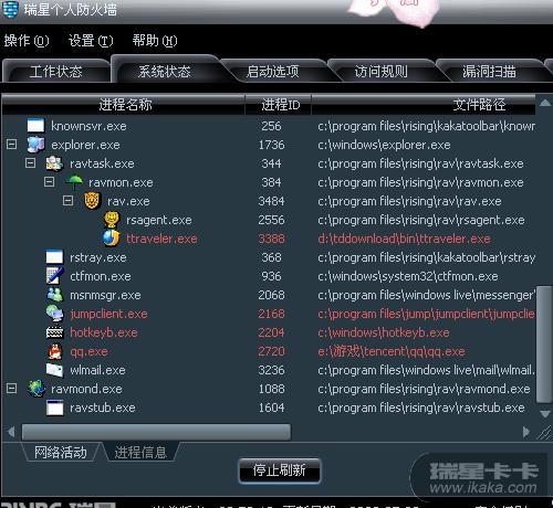 瑞星现实的进程信息里有很多程序是红色的??防火墙里看到的??