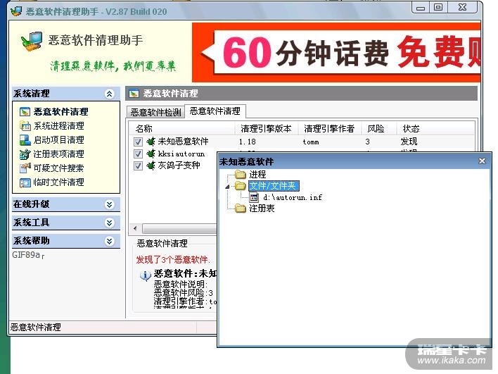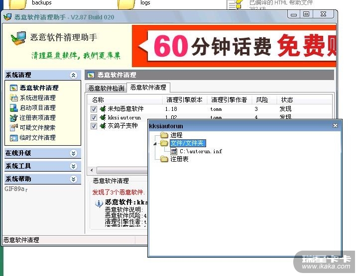 2、关于autorun.inf,应该是安全工具创建的免疫文件夹,恶意软件清理助手误报。