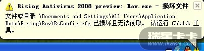 我刚刚发现,打开瑞星运行不了了,会出现下面的提示。请教一下高手,这个要怎么办啊~!!!