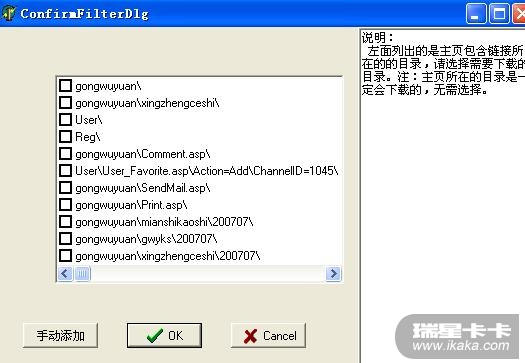 在手动添加中输入你想保存的内容就可以了 比如我想保存gongwuyuan下面的xingzhengceshi这个子目录,我就输入gongwuyuan\xingzhengceshi