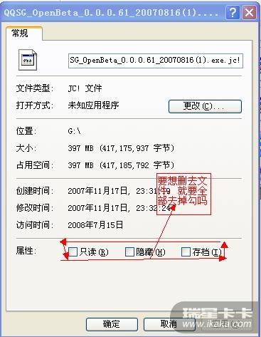 属性栏是设置该文件属性,去掉勾就去除了这个属性。以前FlashGet安装文件名是fgcn。