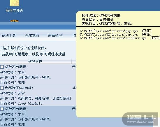 卡卡助手是通过完整路径+文件名,或校验MD5的方式来查杀流行木马的,应为卡卡本身是不带病毒库的。