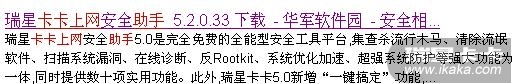 今日看到信息卡卡出了最新版的6.0,本人一直是瑞星产品的真诚用户,见到此信息后,毫不犹豫将卡卡5.2进行了卸载,换上了最新的6.0,使用过程中,发现其功能确实大有增强,但是某些5.2上的功能却不见了影子(在此我也不必多言,相信大家看了那么多帖子,也清楚是怎么一回事了)。