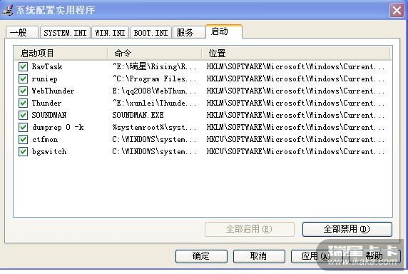 恐怕还不止这些启动项。你安装一个“优化大师”或者卡卡,你再看看你的启动项。
