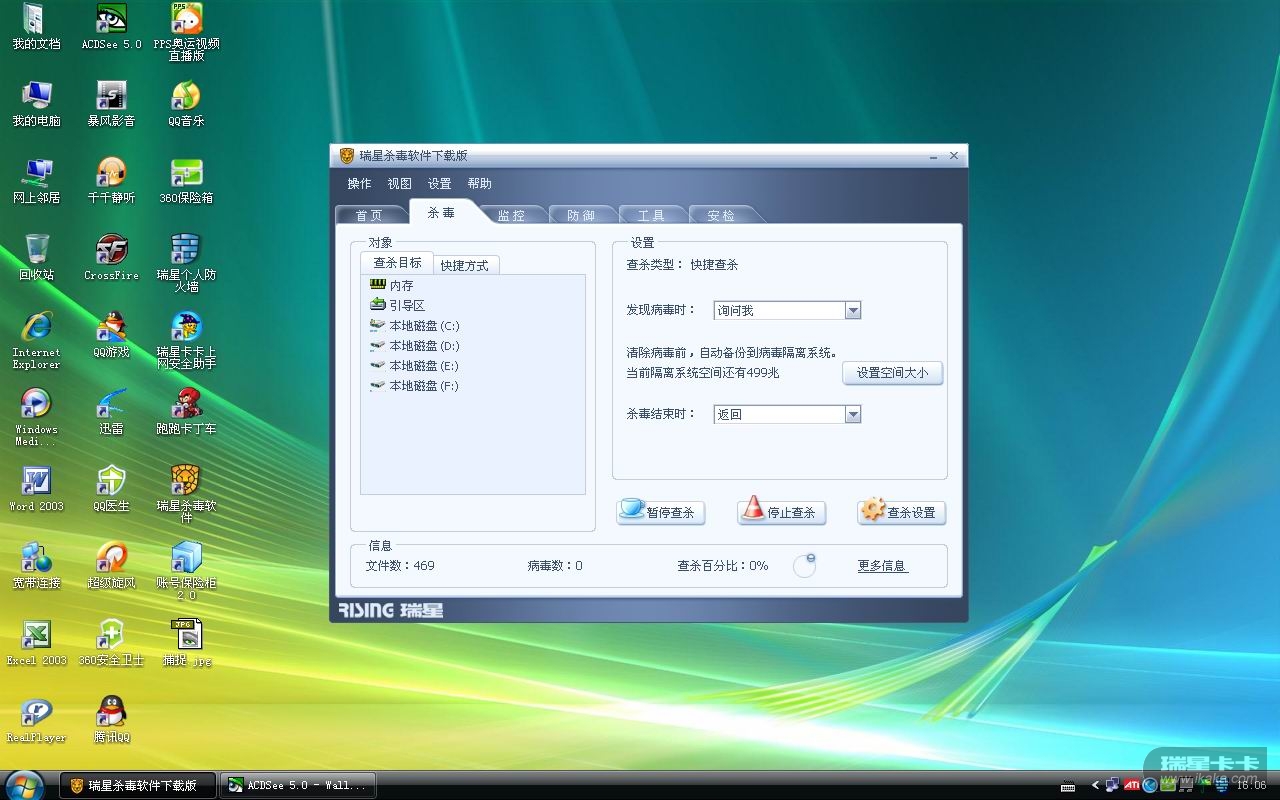 本来杀毒软件旁边有个小狮子在查毒,现在只有狮子,没有查毒的迹象(我的截图没有那个小狮子,其实是有的.就是查毒时不动.