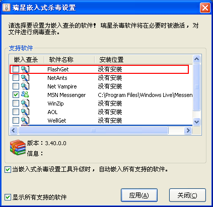 技术人员呢!现在发又发现问题,就是最上面有个FlashGet显示未安装,而下面也有个FlashGet显示有路径和图标!每次下载完成单个文件都会弹出“那个嵌入式查杀窗口”很烦人的。:default11: