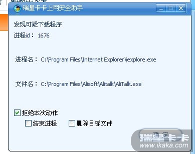我查看了一下,被拦截的是阿里巴巴的官方软件,阿里旺旺.