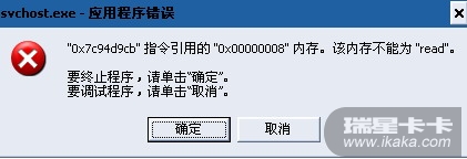 我的电脑在开机使用一段时间后,经常弹出"svchost.exe-应用程序错误"提示,内容为: