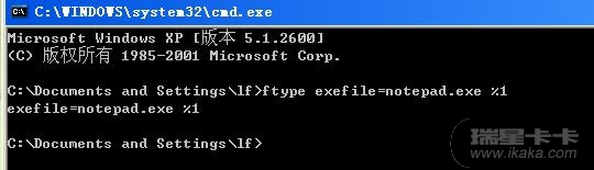 第二步:输入ftype exefile=notepad.exe %1,这句话的意思是将所有的EXE文件用“记事本”打开。这样原来的病毒就无法启动了。如图: