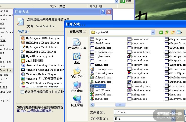 第四步:右击任何文件,选择“打开方式”,然后点击“浏览”,找到Windows\System32下,选择cmd.exe,这样就可以再次打开“命令提示符”窗口.