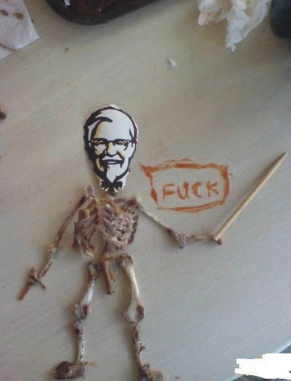 朋友们,你们知道我们在肯德基里面吃的是鸡的腿和翅是最多的,几乎全是腿和翅,你们想想,哪里来那么多的腿和翅,其它的部位都哪去了呢?差不多每只鸡身上有4-5个翅膀,3-4个腿。我真的都已经出离愤怒了.看着城市里那一块块肯德基的牌子, 我......无语了