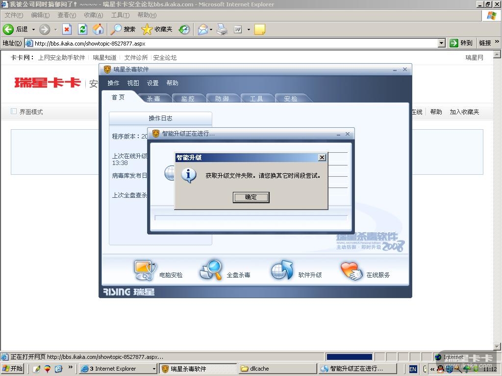 修复了也不行,刚刚瑞星提示我要升级~,可是按了升级~到最后还是像我发的图~一样!~~~怎么办