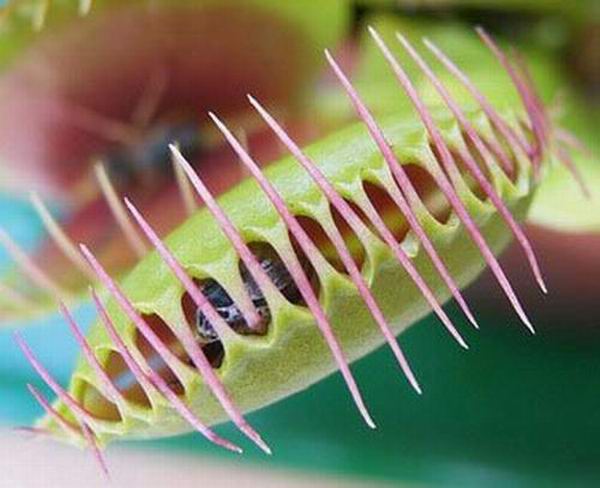 这种食肉类植物自身可以分泌消化液的,平时叶片是张开的,遇到虫子落上就会快速闭合。