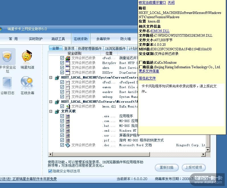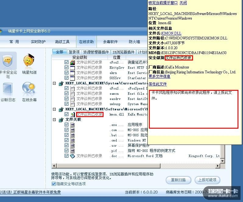 如图,“文件诊所已收录”与详细信息中的描述完全不一致。