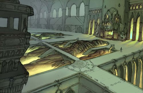 “到达到崔斯特瑞姆后,我们在进入大教堂之前花了一些时间来准备。我似乎记得城镇中有一间不错的旅店。事实上,有些邪恶的东西从那个老教堂里跑出来了:你能感觉得到。现在,我与我的队友们都不愿承认感到害怕,于是在大家撒腿逃跑之前,我们闯进了那个地方。现在我想告诉你的是,那里充斥着我前所未闻的死亡气息。刚进去,我们便被不死生物袭击了,”他暂停下来,看看我是否在怀疑发笑。