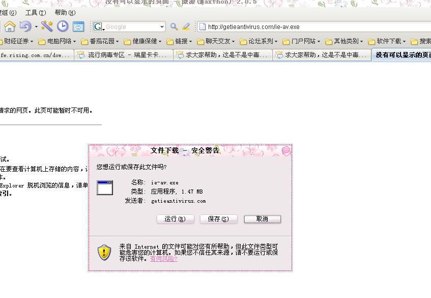 昨天我删了瑞星防火墙后问题还是一直出现,只不过有了点小的变化,我把图贴在下边:
