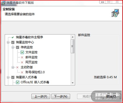 那瑞星比卡巴斯基实在,卡巴斯基装好后,所有监控都可以运行,但是IE经常报错(网页经常无法打开),卸载掉卡巴斯基(或者关掉WEB监控)就正常了(看样子卡巴对64位VISTA支持也不好),瑞星也对VISTA X 64支持不好,干脆就在安装的时候强制不安装,不会对用户造成损害(我用卡巴,害我查了半天)。希望瑞星赶紧作出对X 64支持好的软件来~