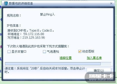 今天一开电脑,瑞星的防火墙就一直在转个不停,我把鼠标放在上面,显示一个IP地址禁止PING入,你把鼠标拿开,在放上去,又显示的是一个新的IP地址禁止PING入,已经不知道显示多少个IP地址了,防火墙已经转了2个多小时了,没停过,这是怎么回事。
