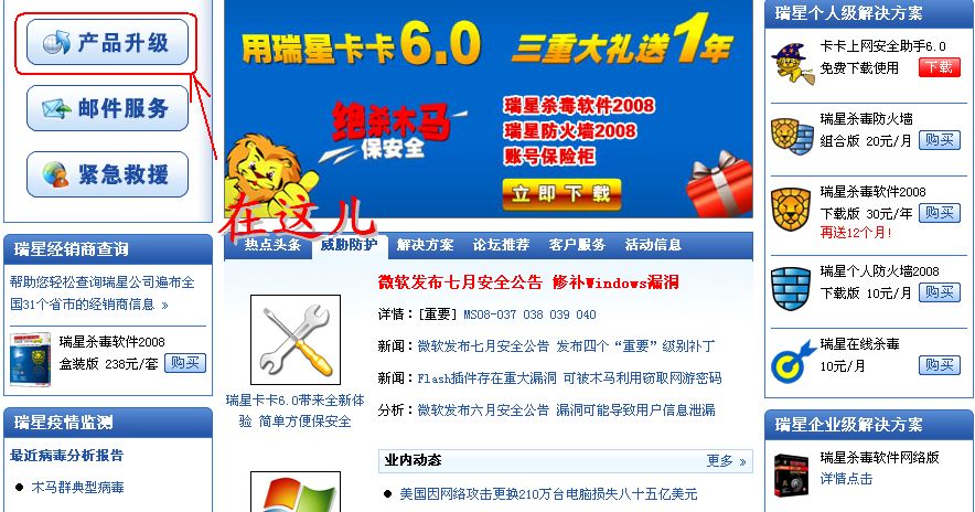 打开瑞星官网[img]file:///C:/Documents%20and%20Settings/Administrator/桌面/截图00.jpg[/img]