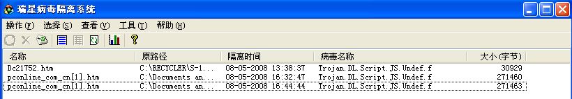 今天我吧瑞星2008升级到最新版本,可是当我进入到【太平洋电脑网】时瑞星就马上提示发现病毒,