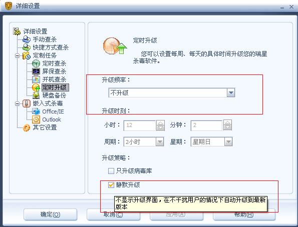 若是设置了即时升级,并且点选了静默升级,则只要用户联网了,瑞星就会在后台升级。